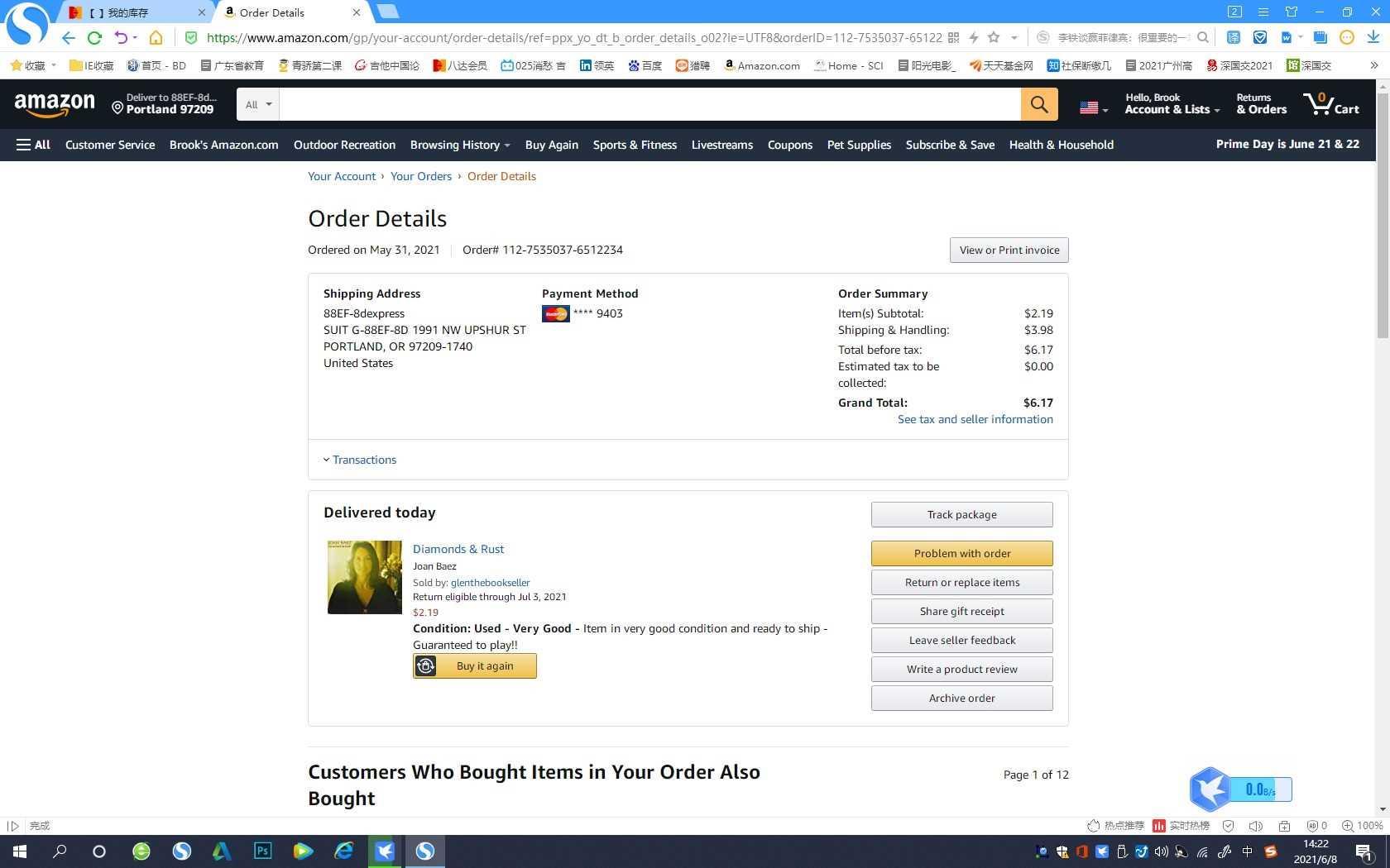 八达+顺丰,一周多点就到了!