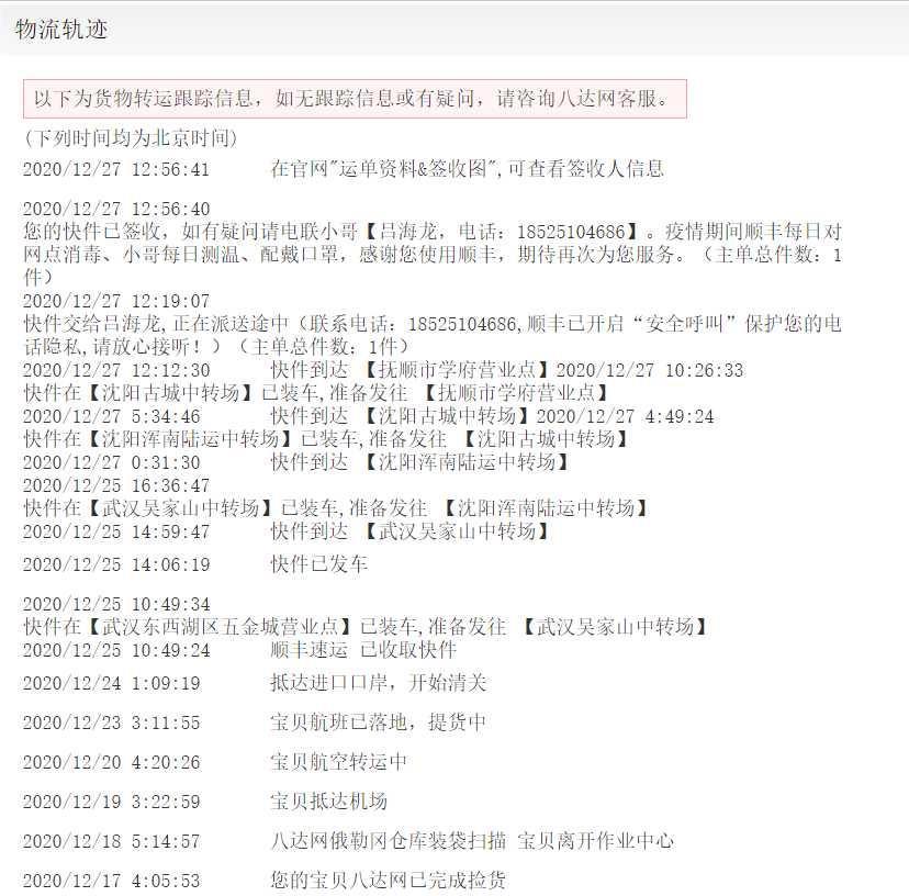 感恩八达用心运输我的包裹,每次都很快