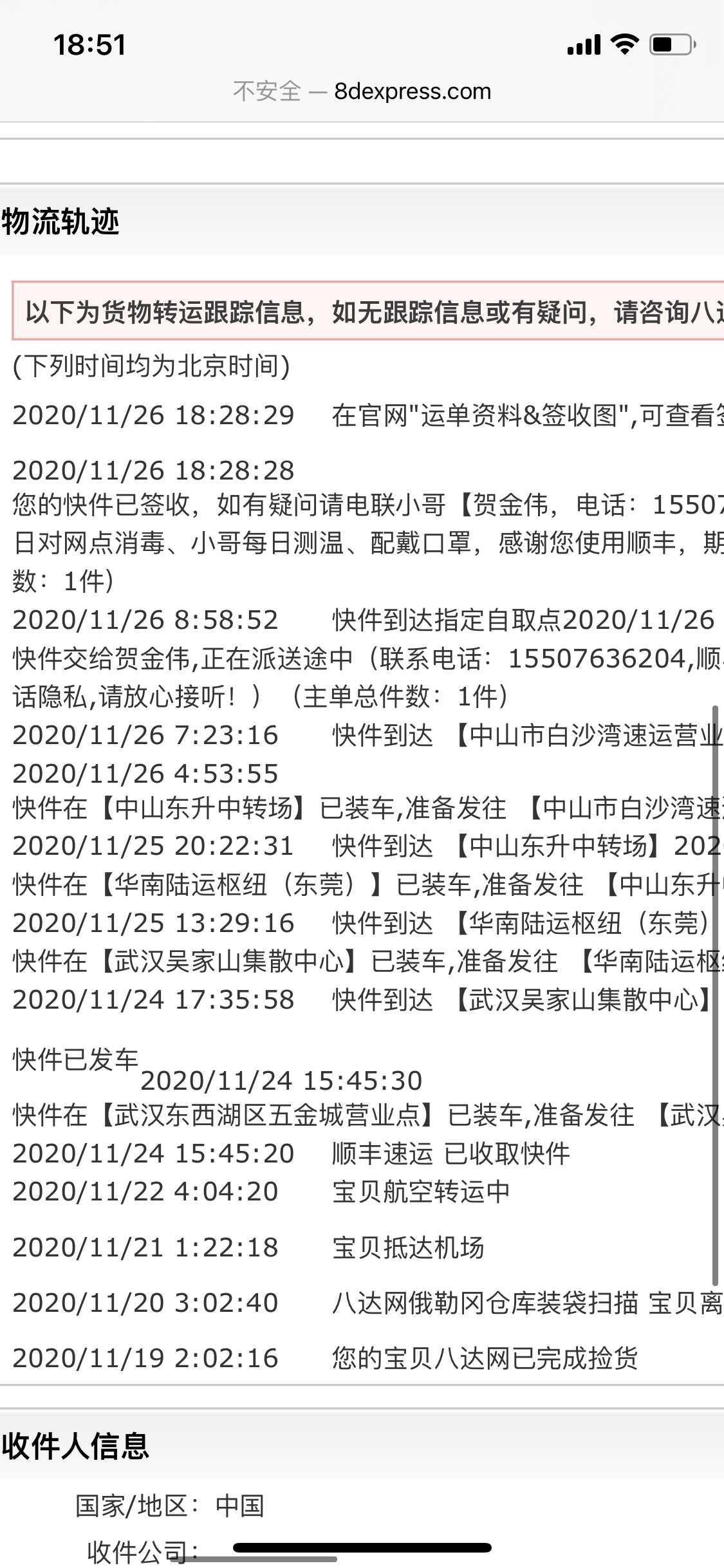 虽然美国疫情严重,但是国际物流还是非常的稳定,基本15-20天左右都到了杭州,幸运感激。