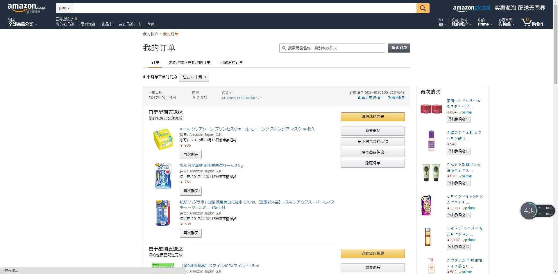两瓶资生堂护手霜,一起给邮寄的,速度最快的一个包裹,中间也没有受阻。