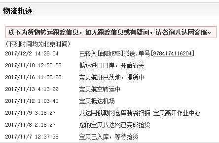 <p>自打发现了八达网,我就一直用了,也懒得找其它家了,时效可以,关键是有包shui渠道,价格也还合理,主要是买化妆品,不多说,上图啦。</p>