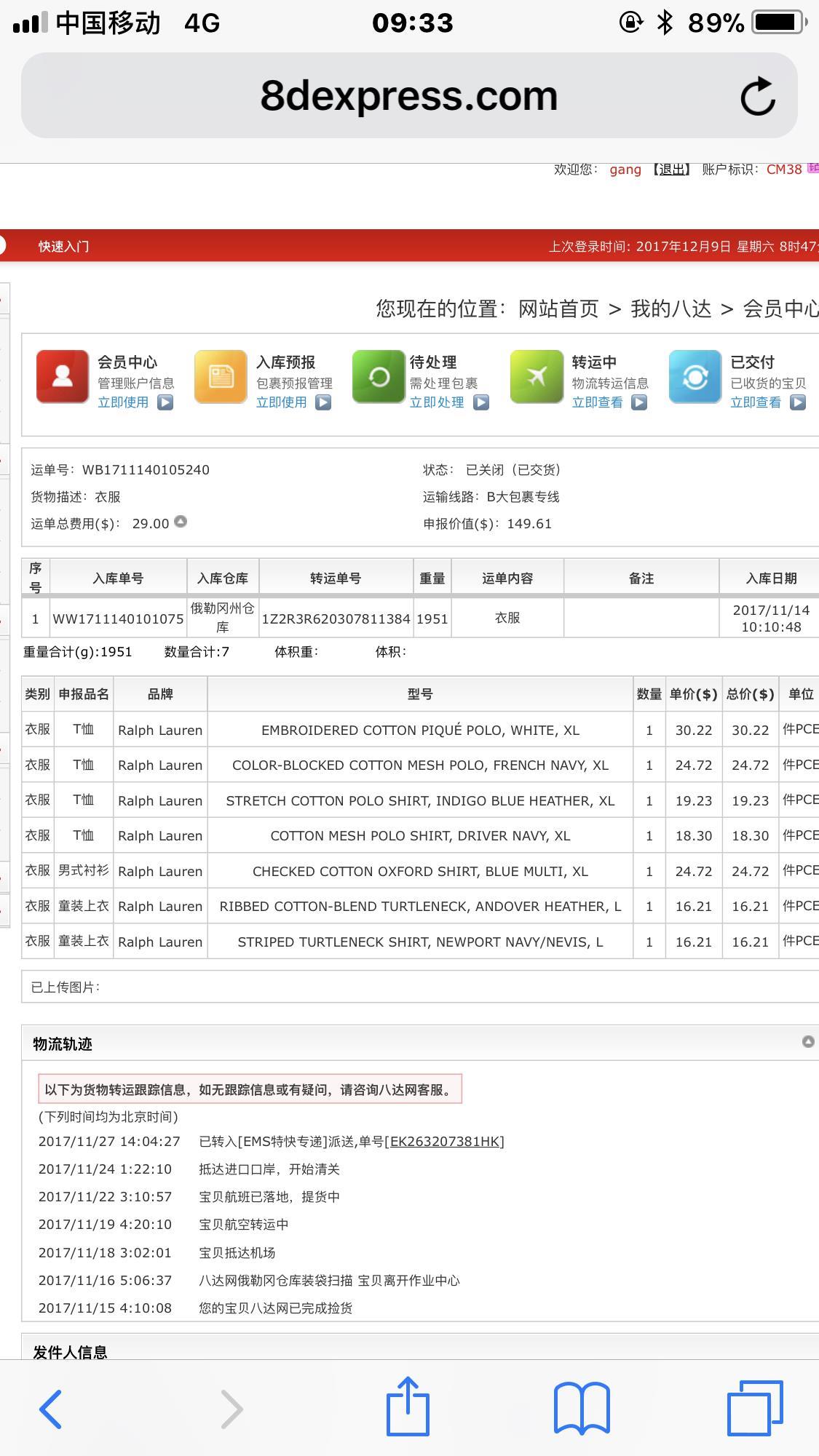 衬衫无税到手,很不错!~