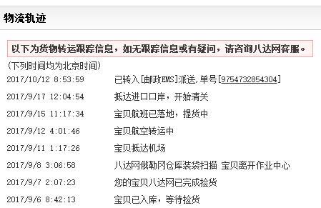 八达最近速度开了挂了,10天就显示转国内了,大大的一包,够美半年了啦
