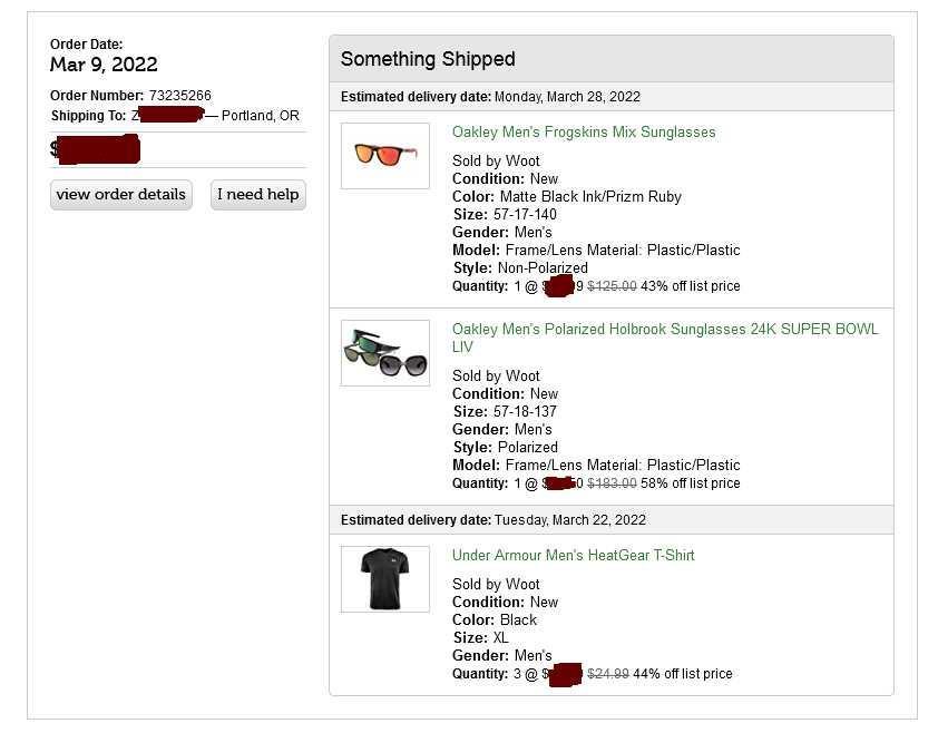<p>WOOT购买了OAKLEY太阳眼镜,疫情期间8达网依旧能够迅速派送,真的是相识恨晚!今后海淘就在8达了。国内采用顺丰派送稳稳地。<br></p>